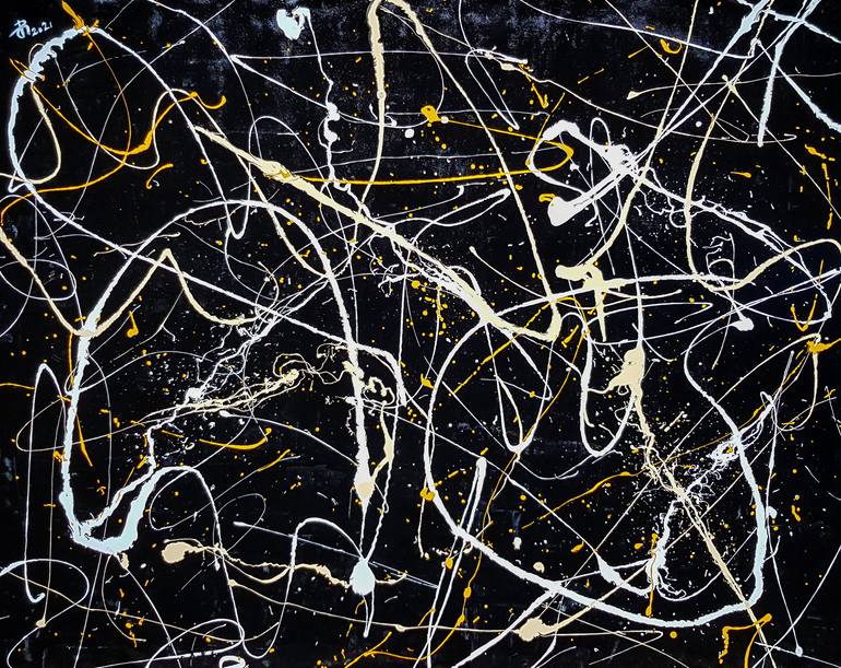 LARGE FORMAT! Modern painting in Jackson Pollock style. Enamel, Oil on high-quality gallery Unstretched Canvas. After Stretched on the wood frame Size: (H)96x(W)120 cm. / (H)38x(W)47 inches. Total dimensions: (H)106x(W)130 cm. / (H)42x(W)51 inches. 5 centimeters of extra canvas around the image a...