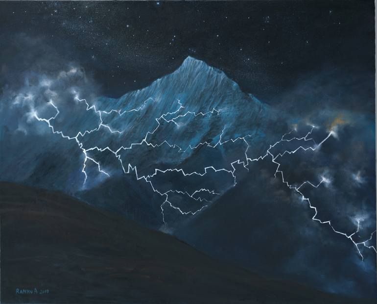 Mystic night in Himalaya. Dry thunderstorm. Vajra Dance