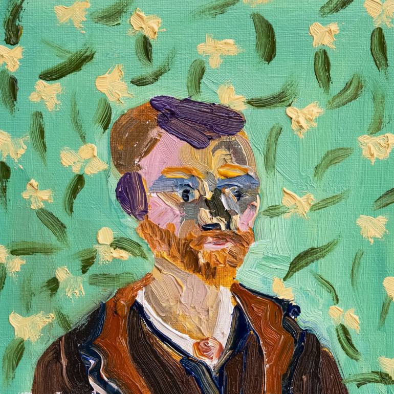 A portrait of Vincent Van Gogh. Created for The Other Avatars; Saatchi art's NFT project. Original oil painting on textured paper. Measures 6x6” and comes matted in a 8x10” white mat. Can be framed in an 8x10” frame. Find more of my work and view my process on my website and on Instagram