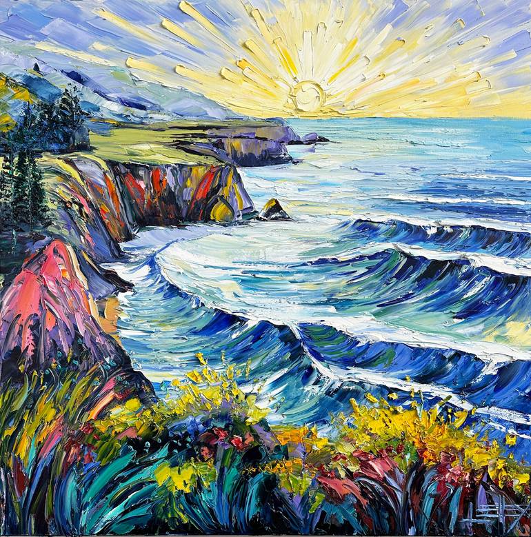 'Van Gogh's Vista' is an original oil painting on gallery wrap stretched canvas by Lisa Elley. With the help of Lisa's palette knives, the California coastline comes to life with an expressive touch and a Van Gogh inspired vibe. The palette knife layers thick strokes that accentuate the rugged waves...