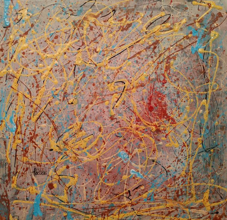 The work is greatly inspired by Jackson Pollock persona, and his "dripping" technique. The work had been created using direct, instinctual, spontaneous application of paint by brushstrokes and other convenient tools (sticks, palette knives...).