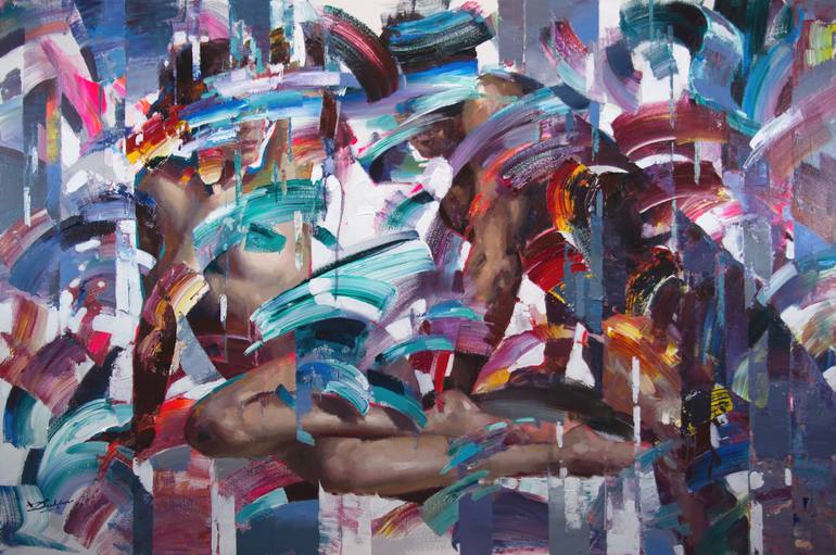 This painting is one of my figurative abstract style. The painting is a result of nonstop creative process inspired by woman's beauty, oposite side of our life and abstract colors.