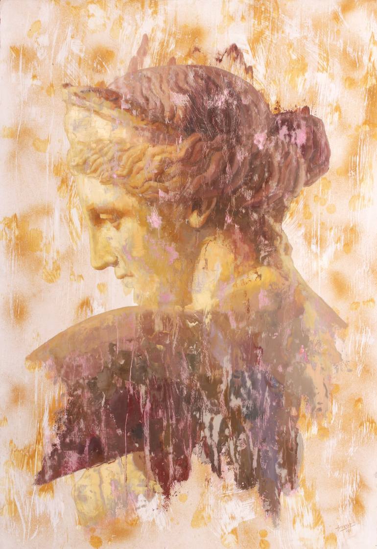 With this work, the artist wanted to pay homage to classical art and mythology through the representation of the Venus of Capua. It is part of a large project developed in recent years, in which it uses sculptural references from different periods to generate a pictorial work based on superimposing ...