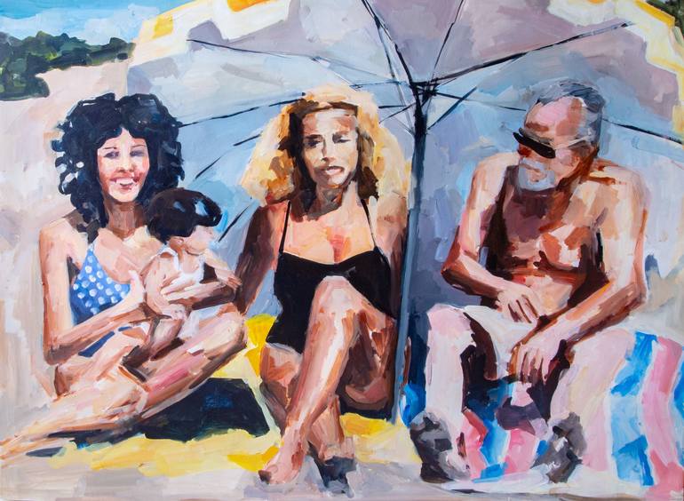 This is a painting taken from an old photograph from when I was a baby. The idea is to relive moments that were left in the past as a way to reconstruct my personal history. In the photo you can see my mom holding me, my grandmother and my grandfather enjoying the beach.