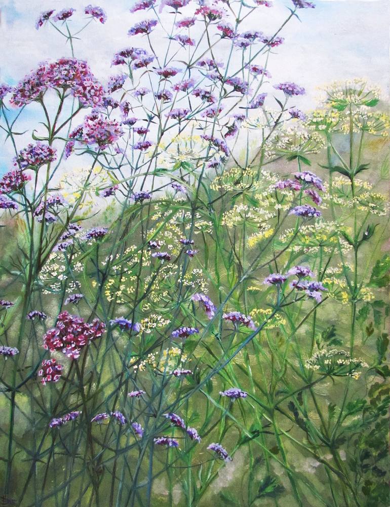 Beautifully light, refine and elegant flowers of Verbena Bonariensis and Petroselinum crispum (parsley). Purple-lilac imposing Verbena and yellow-white, sparkle-like delicate umbrellas of Parsley. Fresh breeze of the summer morning in the beautiful Devon garden near Dartmoor, gives you a lovely “vi...