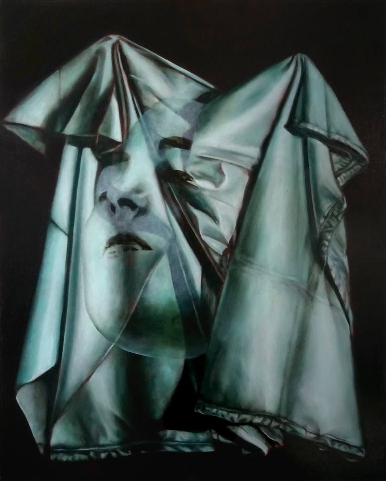 My interpretation of the Veil of Veronica, or Sudarium (Latin for sweat-cloth), also known as the Vernicle and often called simply the Veronica, a Christian relic consisting of a piece of cloth said to bear an image of the Holy Face of Jesus produced by other than human means (an acheiropoieton, "ma...