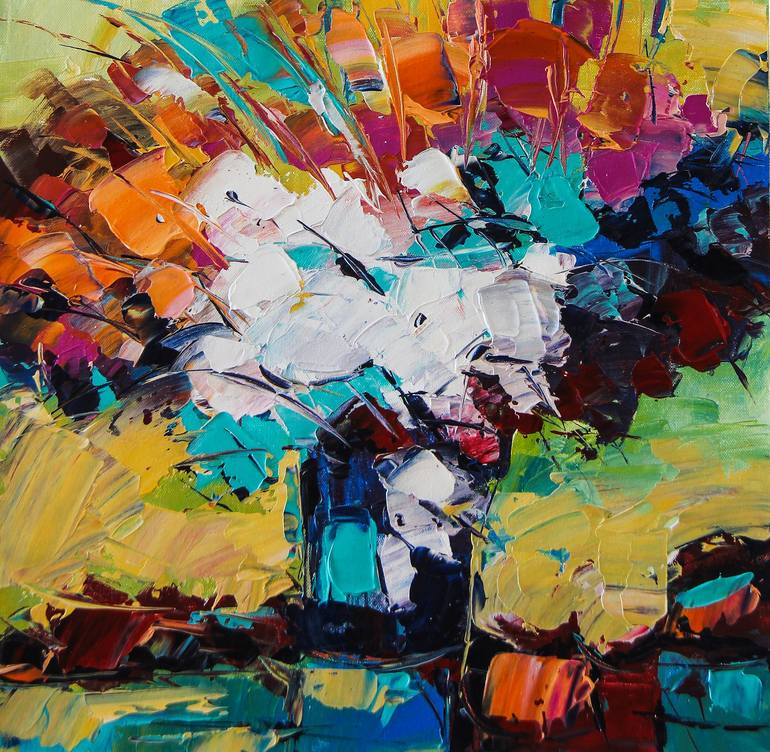 This original acrylic painting on canvas is a beautiful, small-sized representation of a vibrant bunch of tulip flowers. The artist uses expressive brushstrokes to capture the essence of each bloom, creating a symphony of color and form. Inspired by the diversity of people around the world, this fl...