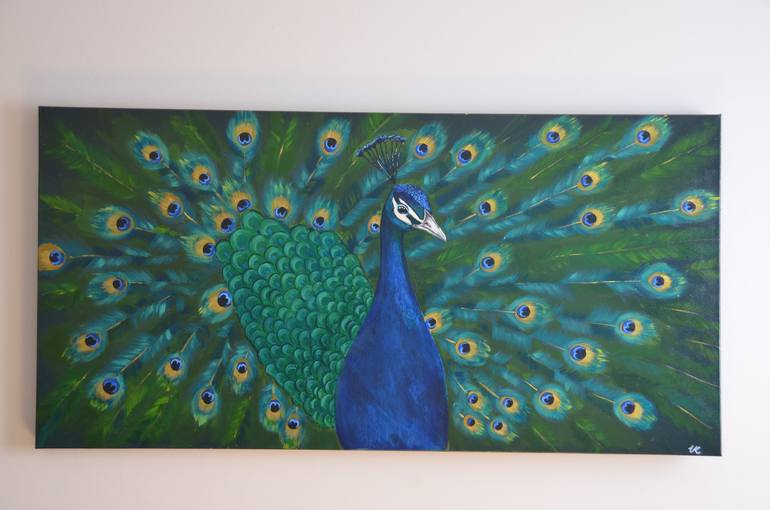 Happiness is a state of mind and everyone shows it differently, but the bird peacock is said to dance when it is happy and shows the most vibrant displays of colours. I saw a peacock dance and it was mesmerising… hopefully the viewers sees the the painting and can see me capturing the state of happy...