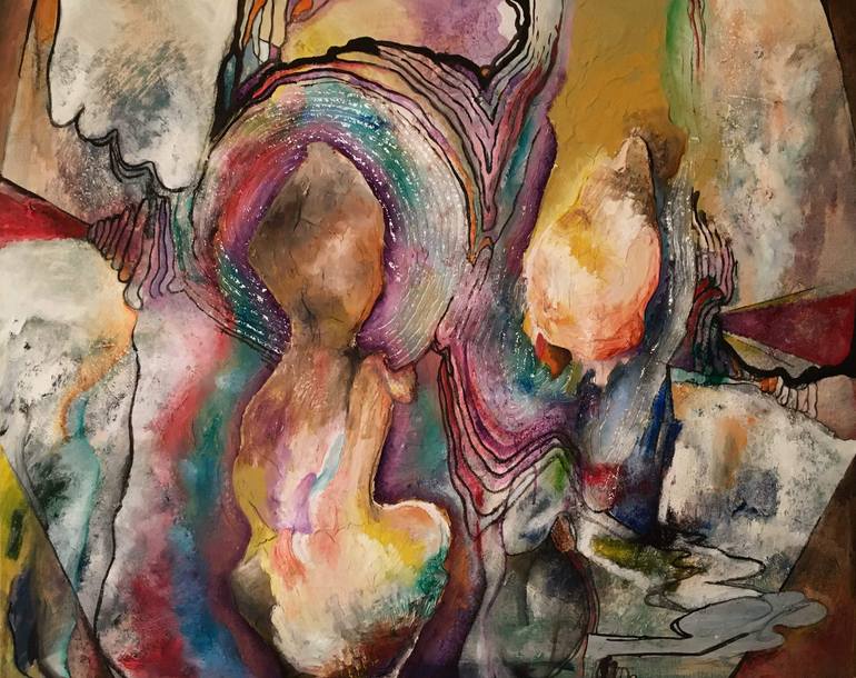 This piece, on the surface, was inspired by the relationship between men and women. It reflects the cohesion and kind of interdependence that can occur in that relationship. In terms of materials, it represents heading into a new direction with elements that change with light and add a new percept...
