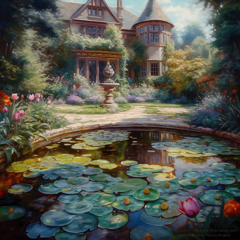 Step into a bygone era of enchantment with "Victorian British Garden," an exquisite piece of art that transports viewers to the resplendent British gardens of the Victorian era. This masterful work, created in a fusion of Impressionist and Realist styles, captures the essence of a beautifully landsc...