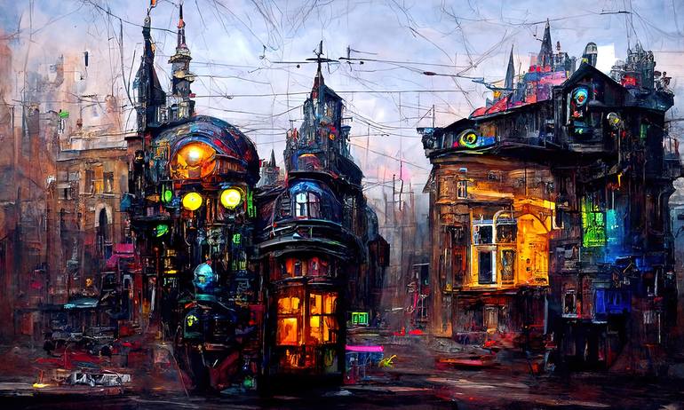 Victorian Steampunk City Strolling through a Victorian city of a Steampunk universe. Everything looks the same but different, the strange architectures, the harsh colors, the mysterious machinery. A place from another universe, from another time.