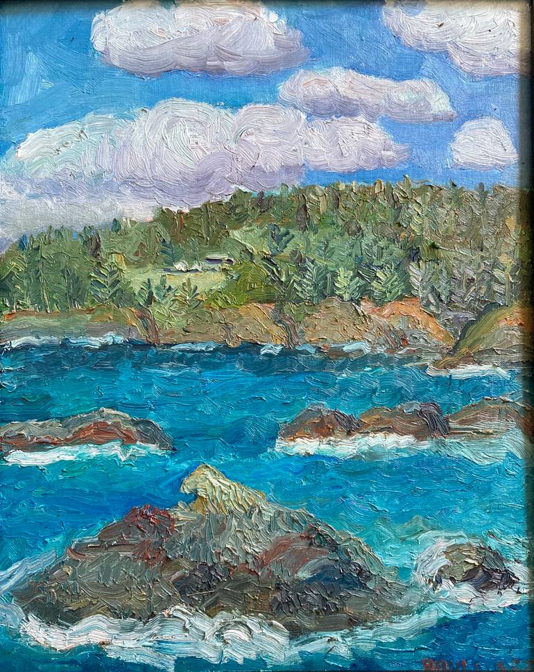 I went to the Mendocino Open Paint Out and painted 10 paintings in a week. This is one of those paintings. FRAME NOT INCLUDED. This is the first painting I made during that week. It had just rained cats and dogs the prior day, so there were still storm clouds. It was a lovely sight.