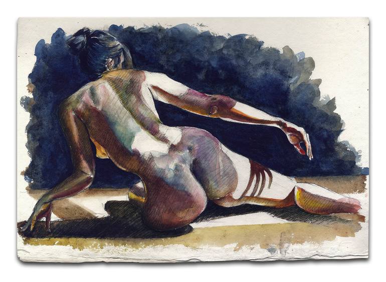 I am a figurative and portrait artist working in a variety of media. My nudes are drawn in soluble graphite on handmade paper, painted over with watercolour, this blends the line work and underpins the colour. I also paint in oils on stretched canvas or board. I am been taking online portrait commissions, both nude and traditional. I have also recently discovered a love for landscape au plain air that has surprised me immensely. My recent work has also included still lives of magnified Horse Chestnuts. I am an Associate Member of the Royal Cambrian Academy of Art.