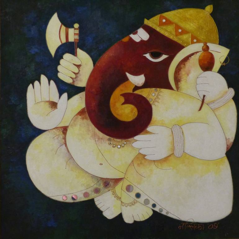 Lord Ganesh, also know as Vinayak (meaning master of knowledge) is the most worshiped God in India. He is believed to be our protector from all evil and giver of knowledge and wisdom to help us sail through difficult times. Acrylic on Canvas.