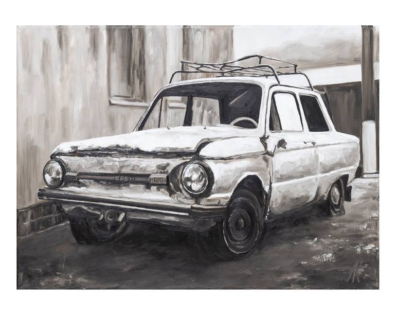 This car was in Kyiv. And I was come across every day when was go to my job. I decided I have to paint it. It is a part of my past, part of my childhood. It is old Soviet car "Zaporozhets" and I want to show you this ghost of car. Please check available sizes and materials for Saatchi art open edit...