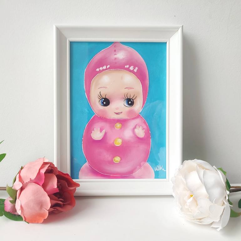 Original painting in soft pastels and acrylic on Pastelmat 360g paper , pop surrealism, vintage rubber toy It is part of the collection ''Retro'' Is a unique piece, not reproducible MEASURES 20x15.5 cm It is framed with white frame and plexiglass glass If you need commissioned work you can co...