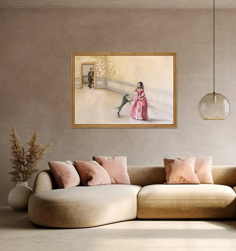 A scene freely inspired by "Il gattopardo" the famous movie by Luchino Visconti with Claudia Cardinale and Alain Delon. Actually I introduced the dog as a third element, while it wasn't present in the real scene, but still, the huge dog in the movie had a primary importance. I liked the idea of cre...