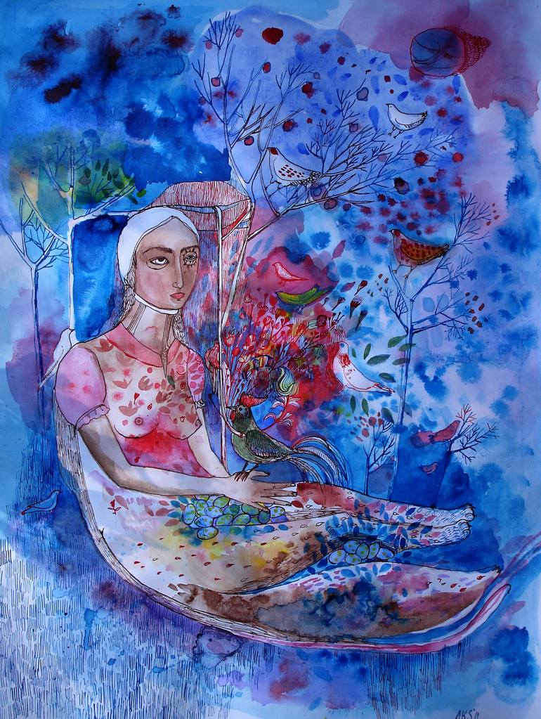 I am Lithuanian Artists’ Association Member and I was acknowledged by the Ministry of Culture of the Republic of Lithuania. I am a Lithuanian artist, creating in a wide range of artistic forms, such as illustrations, drawings, paintings, jewellery, stained glass and so on. In my artworks I tend to explore the inner aspects of human life put against the backdrop of the everyday. Living in an animal farm deep within the Lithuanian countryside, surrounded by velvet lakes and untamed woods, I draw my inspiration from nature, the local folktales and the fantasies they arouse. I graduated from the National School of Art and in 2008 I was awarded the Master of Arts by Vilnius Academy of Arts in Lithuania. Aurelija Kairyte-Smolianskiene creates aquarells, ink and oil on canvas paintings with dreamy images of flying people reaching for the sky. Her work is full of details portraying organic materials like grass, flowers, berries, leaves, fur, fish scales and bird feathers. The colours are very vibrant and lively. Aurelija’s paintings are vivid and colourful, very often with a woman or a girl figure in focus. Babies and centaurs, the astrological sign sagittarius, riders, unicorns and soldiers – all play their magical part in her colorful universe. Some of the people’s faces look sad, distressed or angry. The images often have beautiful animals: horses, foxes, cheetahs, wolves, deer, pisces, birds. She draws human faces with much detail. Her paintings are inspired by the Lithuanian countryside and nature. You might find many symbols within her art. Figurative and surrealistic images full of poetic and shamanic moods. Her semi abstract drawings are lively, detailed and organic, and the compositions and scenes are misty and surreal. ------------------------------------------------------ Don't hesitate to contact me: .artist instagram: aurelija.artist -------------------------------------------------------