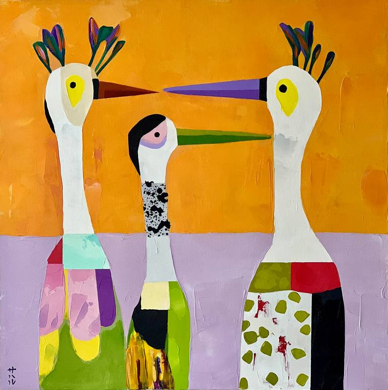 This painting of storks is inspired by my love for nature, but rather than portraying them realistically, I wanted to create something more imaginative. I used bright, bold colors to show that these storks are full of life and energy. The acrylic medium helps bring out the vibrant hues, making the ...