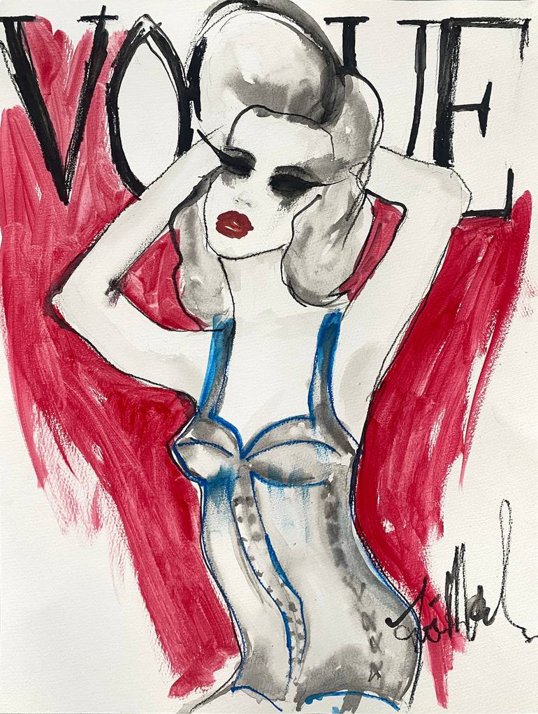 Vogue cover number 5 - original watercolour, acrylic and pencil on watercolour paper. Inspired by Vogue cover. Comes with a cert of authenticity and a handwritten thank you note.