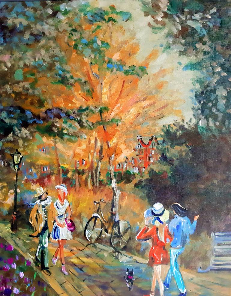 A beautiful day in Vondel park ... Offered beautiful and unique work by professional artist Elena Polyakova-EL-VA Oil on canvas, under varnish. The artist seeks the emotion of light and movement. Technique on border expressive and impressionist paintings, with its own unique style.