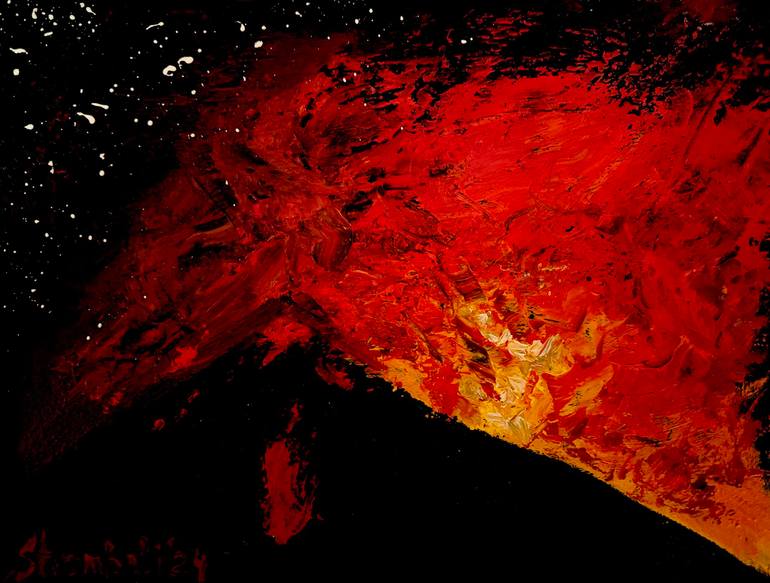 The eruption of the Stromboli volcano. Sicily in Italy The picture was painted in one breath. After the full-scale russian invasion of Ukraine, I had to leave my country. I was reached by a kind Sicilian family, I was safe and even had the opportunity to see an incredible miracle: the eruption of a ...