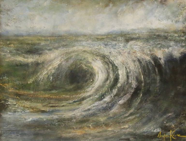 Rolling and breaking on the Portuguese Atlantic coast at Guincho, the waves are enormous, it is the surfer paradise. The day i did my sketches, the sea was very rough. This type i painted was coming on again and again steaming...