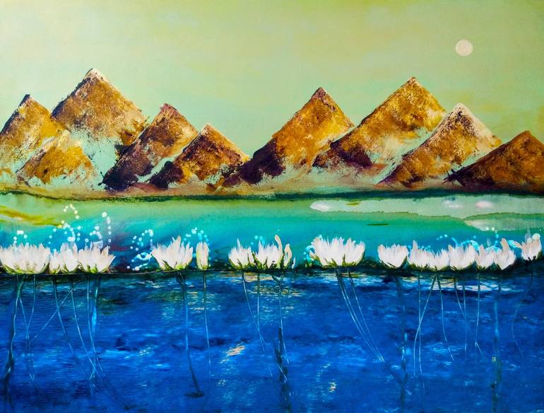 WHEN MOONLIGHT DANCES WITH WATER LILIES, Original, 30 x 40 x 1.5 inches, acrylic on canvas Inspiration: It is said that water lilies close up at night, yet I wondered what happens WHEN MOONLIGHT DANCES WITH WATER LILIES. Year of completion: 2024 Certificate of Authenticity: Available Orig...