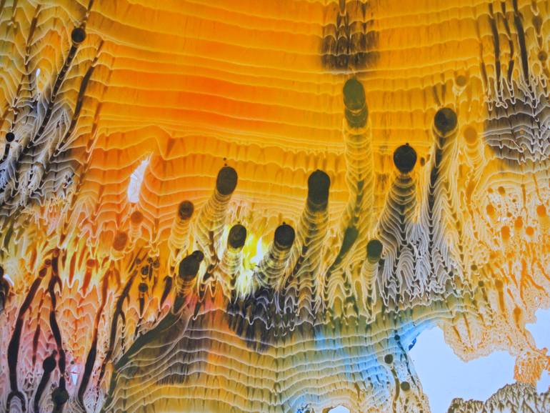 This oil painting represents the movement of a whirlpool in action. Ledesma works on unplanned subjects, elements, emotions, life experiences, which belong to his subconscious. He's always experimenting, in order to get different textures and color mixtures. He uses the regular oils, but changes con...