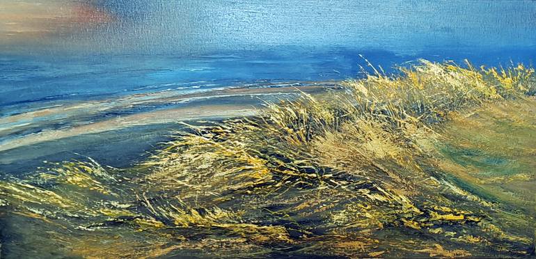 FOLLOWING MY RETIREMENT IN THE VERY NEAR FUTURE CERTAIN PIECES OF MY ART WORK HAVE BEEN CONSIDERABLY REDUCED FOR THAT REASON. THESE ARTWORKS ARE IN ORIGINAL GOOD CONDITION AND THE REASON STATED IS THE ONLY REASON FOR THE DISCOUNT. An Impressionist seascape on top of the sand dunes, overlooking a ba...