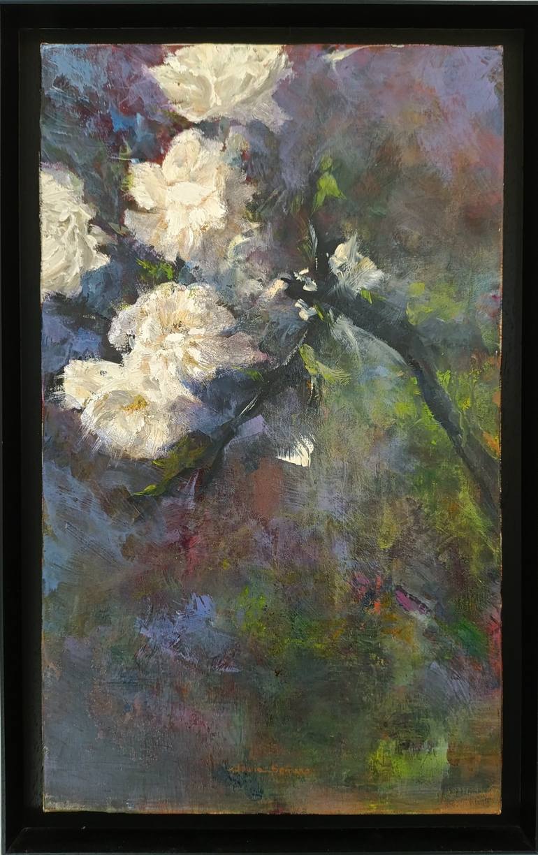 "This painting was inspired by the delicate beauty of white roses glowing under the unique light of Andalusia, Spain. I wanted to capture their ethereal elegance, blending soft brushstrokes with rich textures to evoke a sense of tranquility and timelessness. The interplay of light and shadow highlig...