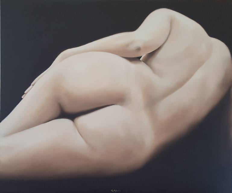 My model allowed me to paint her highlighting her back and bottom in a black world. I worked a lot to make this little painting, especially to get the color of the skin. Mr. de Rubeis is deeply involved in every aspect of his art. His belief in the importance of using high quality materials is evide...