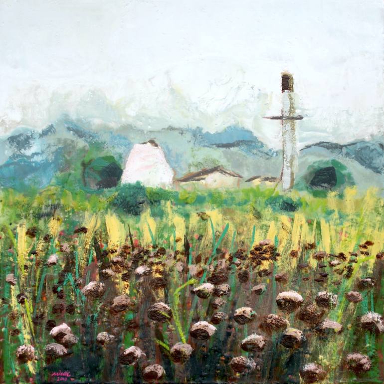 Encaustic painting on wood panel, 24"x24". Waialua Sugar Mill, Oahu Hawaii. Available as a print on various surfaces.