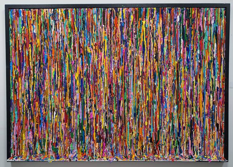 I will wait, like a thick coat of paint. Gorgeous streaking colours cascading down a canvas, hitting a deep waiting shelf at the bottom. The shelf is heaving with colour and texture never spilling a drop. Framed in black.