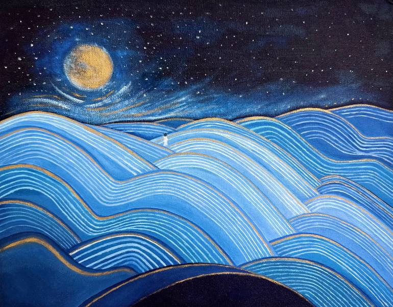 This painting tells the bible story of Jesus walking on water and calming the storm in a modern way. I love bible stories and this particular one brings me great comfort.