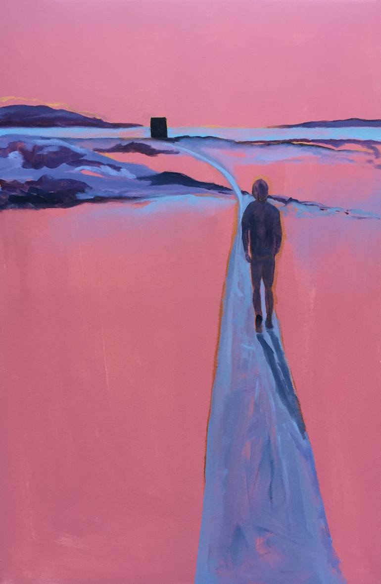 This painting was inspired by a trip to Fogo Island, Newfoundland. On the island, there are a few artist studios that are very secluded. The architect wants the artist to start their creative journey walking to the building. They are all designed as minimal structures in an extremely minimal environ...