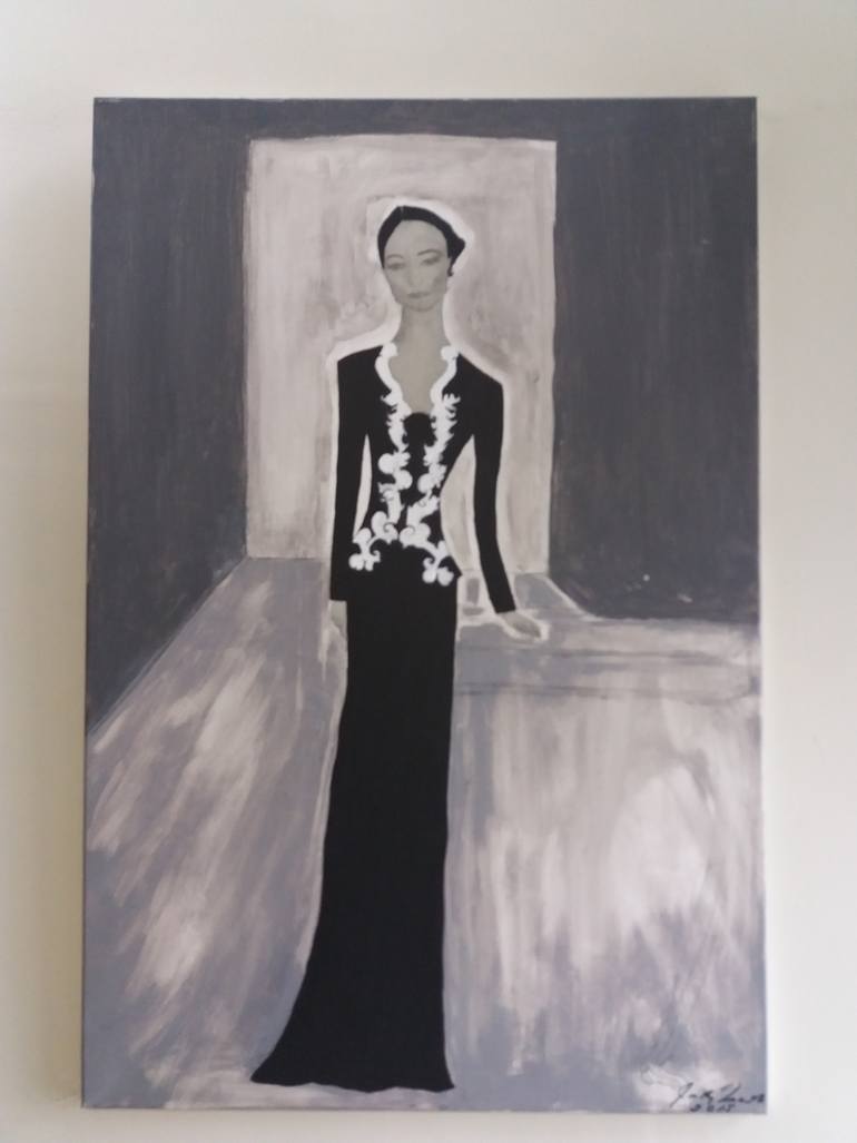 The Duchess of Windsor was probably one of the most brazen women who blazed thru modern history. She once said "I am nothing to look at, but i can dress better than everybody else!" I painted her in somber tones as a homage to the sartorial agelessness of black and white.