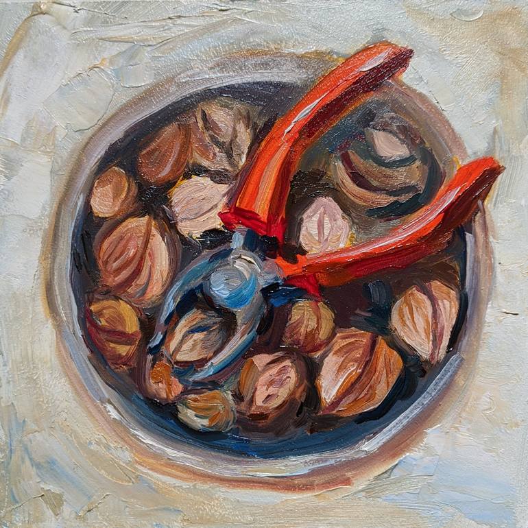 Walnut with pliers is first artwork in series "Walnut harvest" The idea of series came to me in quarantine spring, when I baked walnut pies for three times a week)