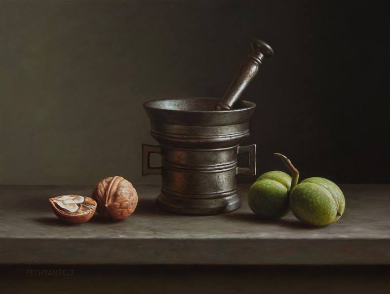 Albert Kechyan is a professional Armenian artist. His paintings, created in traditional painting techniques, demonstrate a mastery of still life, emphasizing realism, light, and texture. Albert’s works possess a timeless, contemplative quality, where everyday objects are elevated to subjects of deep observation. The balance of light and dark, along with meticulous attention to surface details, reveals his dedication to classical techniques while evoking a modern sense of tranquility. Drawing deep inspiration from the beauty of God's creation, he seeks to channel that divine elegance into his work, aiming to evoke positive emotions and a greater appreciation for the natural world in his audience. Albert’s works are recognized and cherished worldwide, held in private collections across various countries.