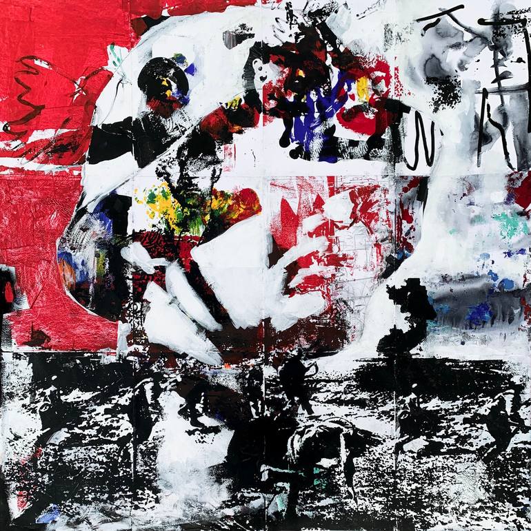 “Wann wird man je verstehen?” 120×120 cm. 2022 Acrylic, watercolor, paper, screen printing.