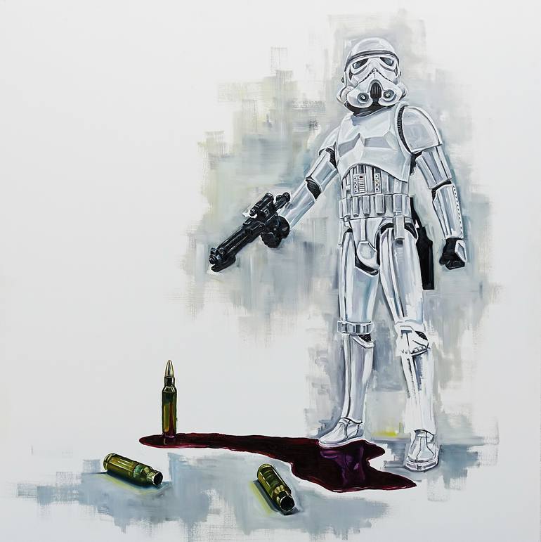 Inspired by childhood and the military. This painting highlights the reality of war. However, again this painting will contain a different meaning for each viewer, which is intentional.