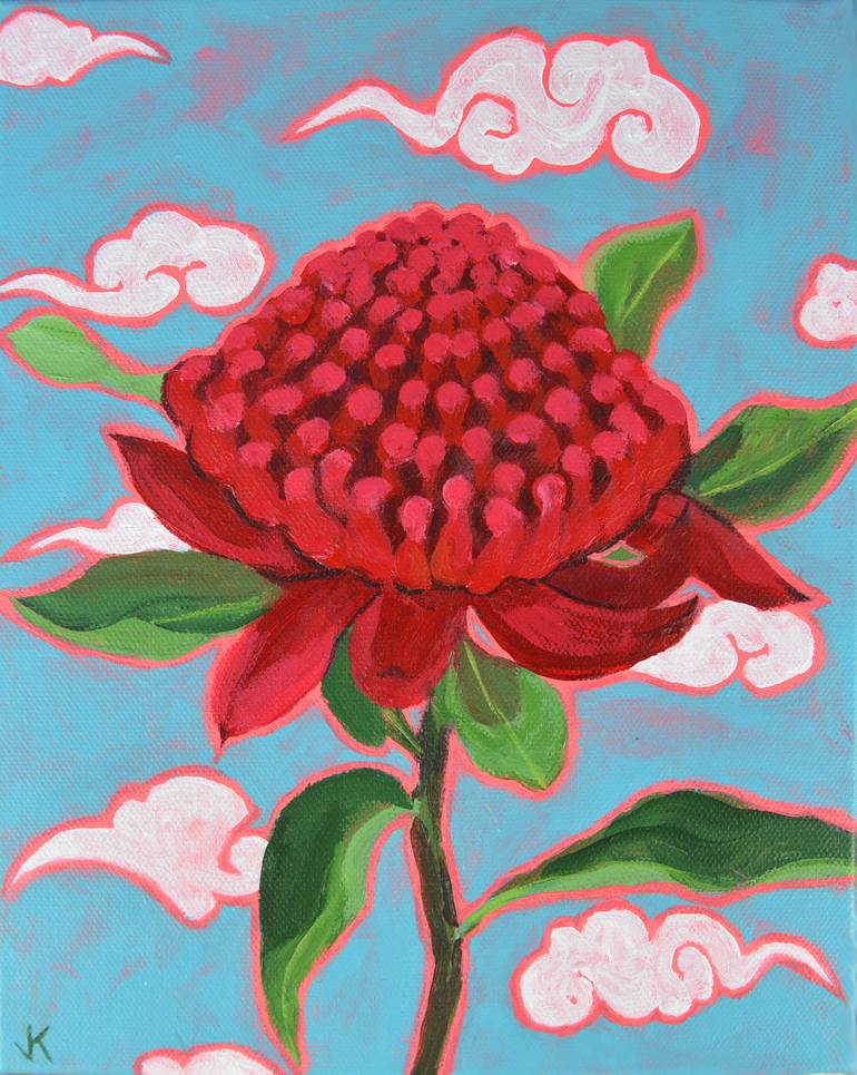 This work was originally shown in by "Culture Crash", an exhibition that explored multiculturalism in Australia. Oak floating frame. Ready to hang.