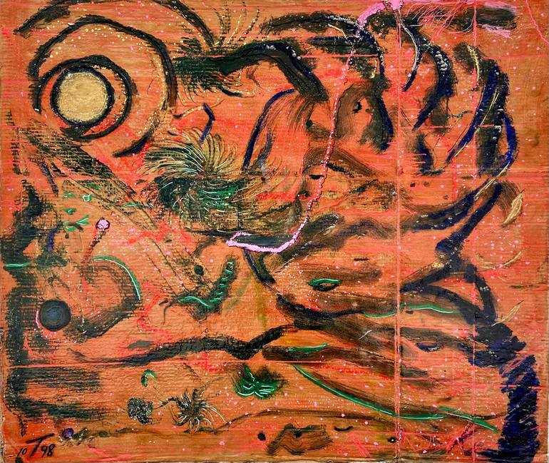 Warriors was what Monaghan refers to a throw away work. The painting was started in 1998 as a pastel sketch on a piece of cardboard that was floor protection. The cardboard shuffled around the studio until it resurfaced in 2010. Monaghan was in a new relationship and revisited the sketch with fre...