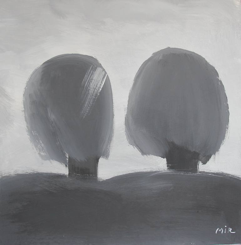 Two anonymous silhouettes rise from a quiet gray landscape, their softened forms suggesting silent companionship and shared observation. The restrained palette and minimal composition invite reflection on presence, memory, and the subtle emotional space between individuals.