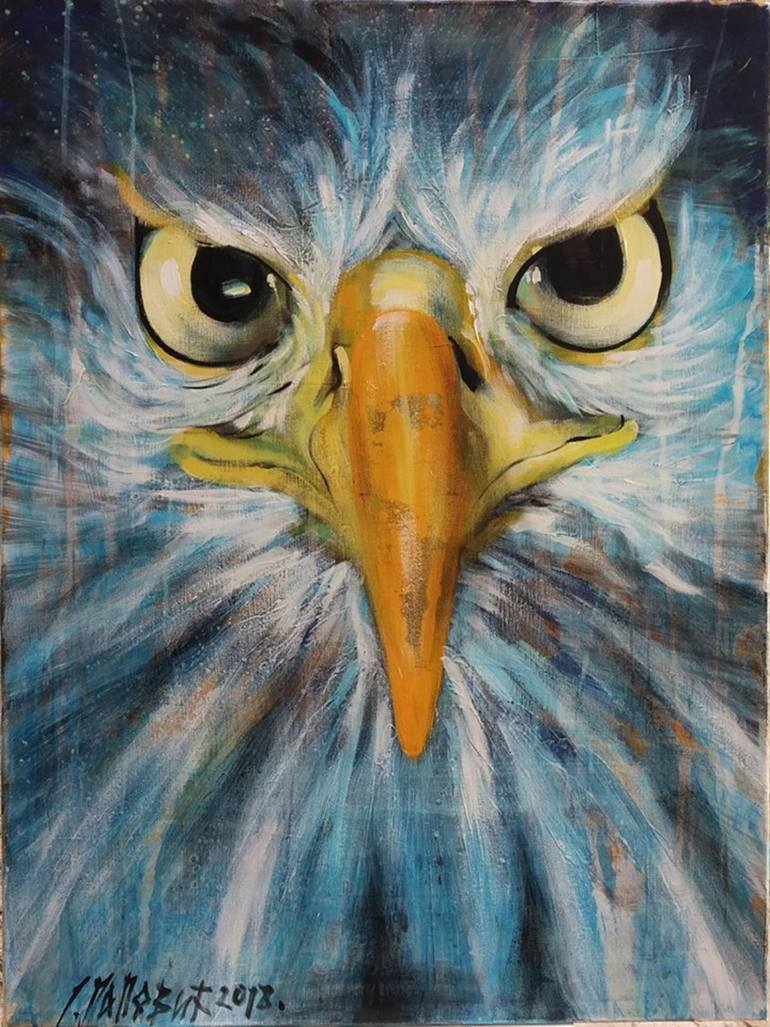 prompted by a story with the participant reality show, arise this painting. owl, symbol of wisdom, watching stupid people over themself and nature
