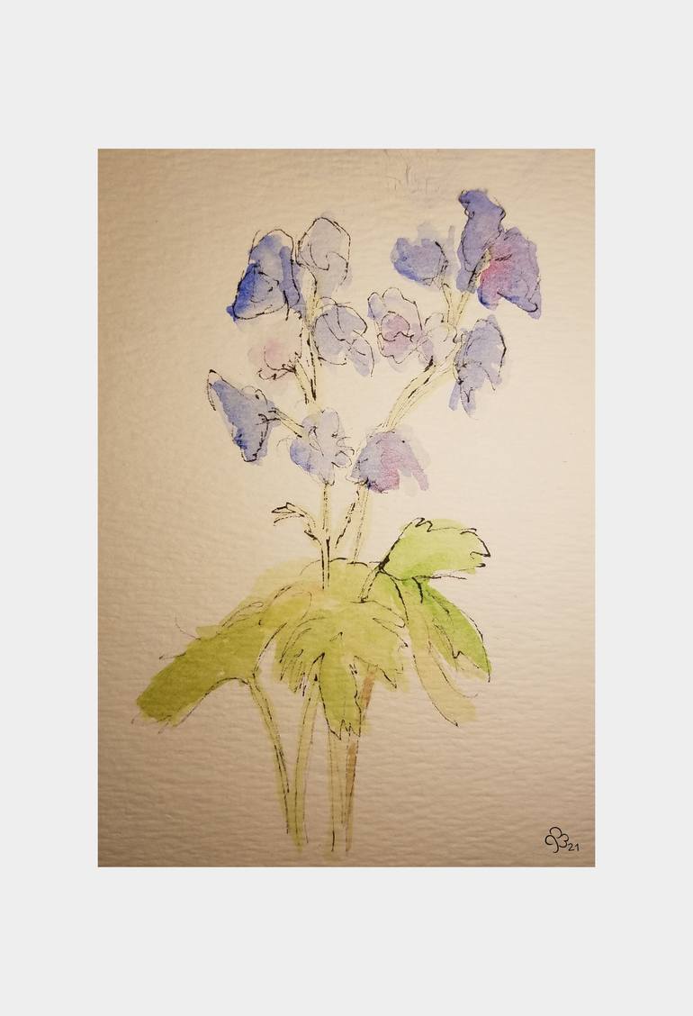 Loose, vintage-style delphinium painting featuring blue and purple flowers