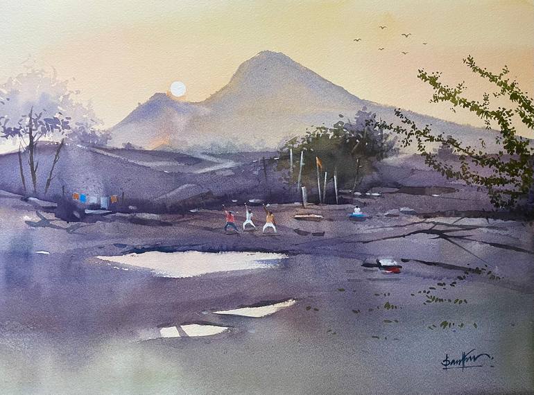 To the origin’s of the yoga ( Arunachala Mountain) 31 cm /41 cm) watercolor on arches paper. Arunachala is a hill in Tiruvannamalai, Tamil Nadu, and one of the five main Shaiva holy places in South India. The Arunachalesvara Temple to Shiva is located at the base of the hill. Each of the spiritual c...