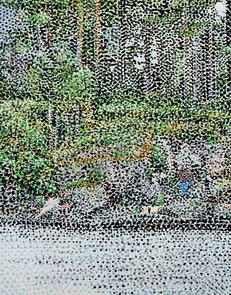 Since the early 90s I have worked as a painter and freelance journalist for several TV networks in Berlin. My journalistic work plays into my art, where my paintings reflect the narrative strategies of modern media. I scan digital media for forgotten images and stories before reprocessing them in the old fashioned analog medium of painting on canvas. My latest series of paintings (like “Whitewashing” or “Residual light”) is focussed on the vanishing of images and the stories behind them. As a TV-journalist I work in a digital fast forward modus, looking for strong topics and finding the appropriate pictures for the stories behind them. I therefore follow very clear and accepted rules in my visual strategy. As an artist, however, I tend to question this media-approach. I view myself as a “visual archaeologist”. TV-stations, like all mass media, are on the one hand huge visual archives that I can browse to find forgotten images and stories. At the same time the sheer amount of pictures they produce mean, that they are also graveyards. But unlike the archaeologist it is not my ambition to reconstruct an “exact” and “objective” image of the lost and found materials in order to learn something about the past. As a painter I am not interested in pure documentary work. Instead I use those lost and found images as raw material to interpret the story behind the images in my own very subjective way, looking for a valid iconography and “meta-story” that is only in part accessible to description. And unlike the archaeologist, who reveals his findings layer by layer, I cover my pictures with layers in order to “protect” them. Corresponding to this approach, I employ a sort of pointillistic painting technique that relates to my work as a TV-journalist: digital pixels are substituted by analog dots and splashes in order to evoke the beauty of a flat random noise on a disturbed TV-Screen. It’s an image that has almost been forgotten and is perceived as a dysfunction in times of HD and digital broadcasting. These blurred, grubby, mixed-media paintings try to hide more than they reveal. You really have to make an (almost investigative) effort if you want to see the picture and the story behind it. But the closer you get, the less you see.