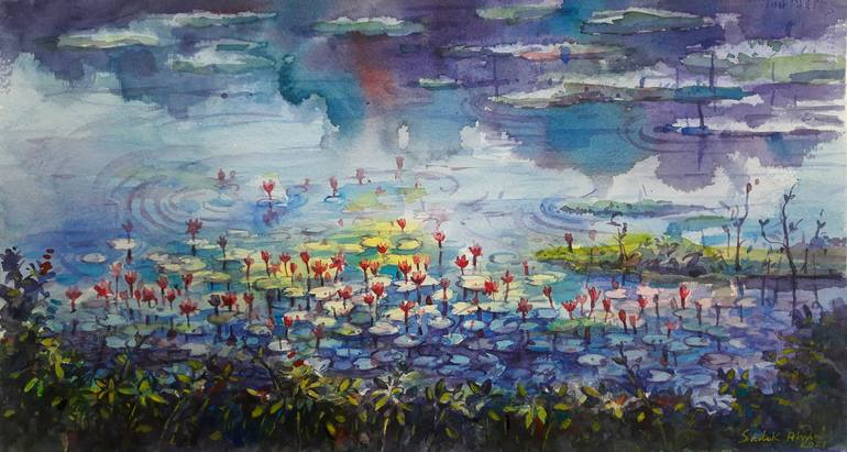 This watercolor is painted by Watercolor on Textured Handmade Paper .Subject of my Painting is Waterlily, which I created as my own style.