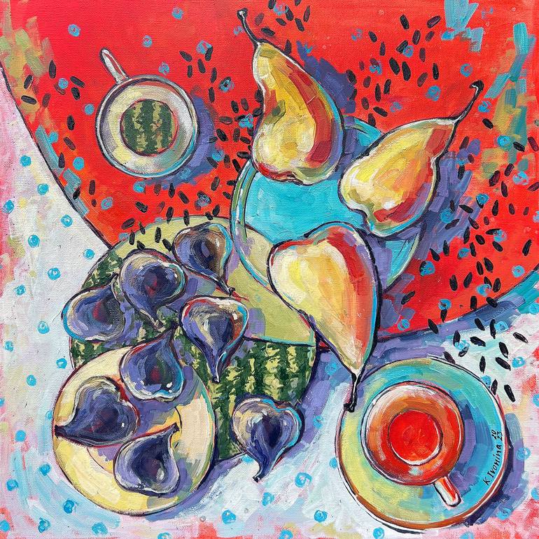 This painting has many symbols. Using ancient symbols, the method of reception and anthropomorphism, I put certain hidden meanings and stories into my still lifes. Each painting is a personal story, state of mind or experience.